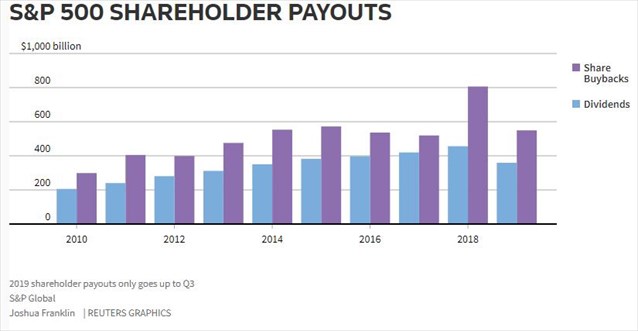 Οι επαναγορές μετοχών ήταν ένας από τους παράγοντες που τροφοδότησαν το χρηματιστηριακό ράλι της δεκαετίας στη Wall Street.